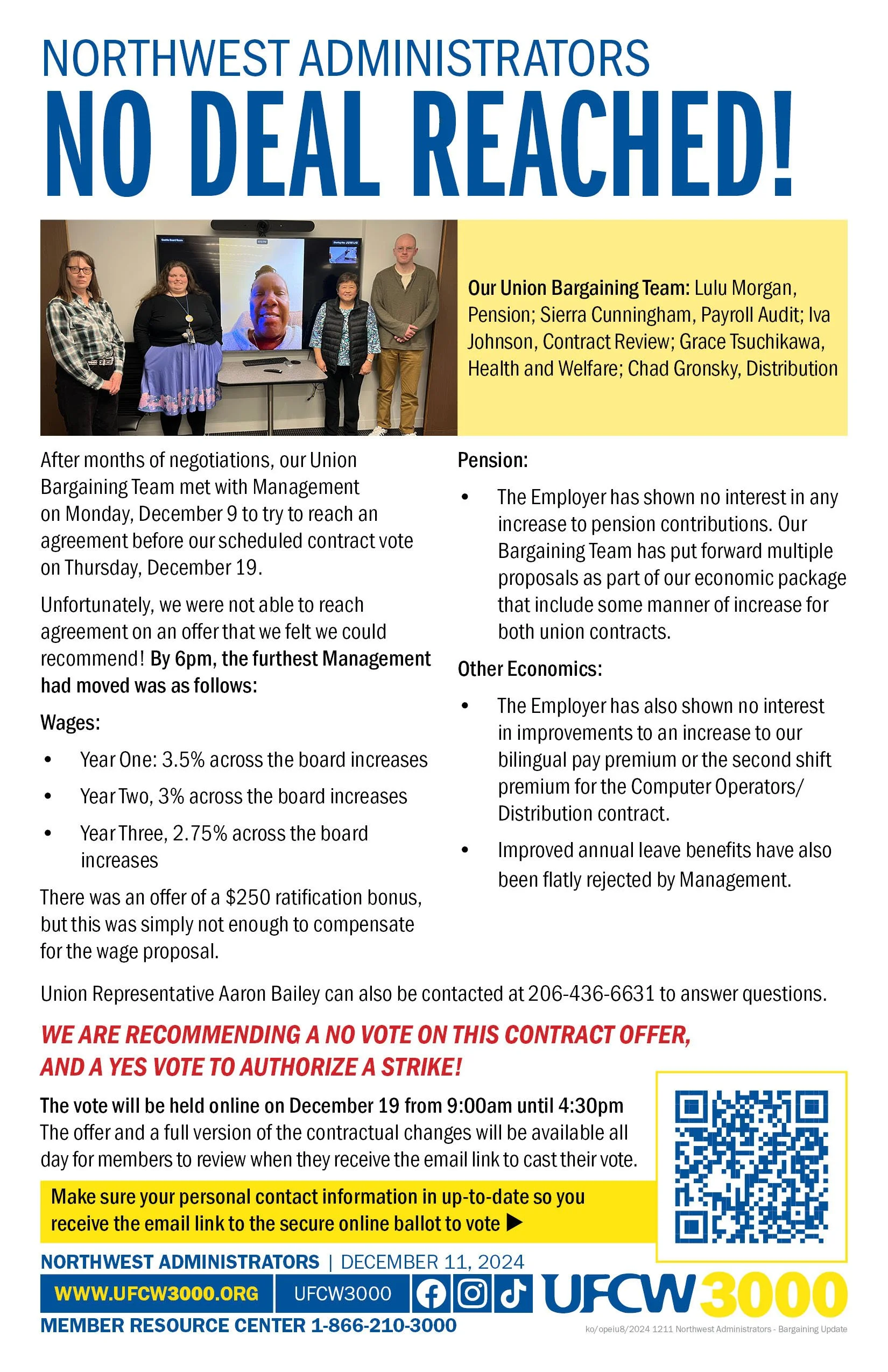 /After months of negotiations, our Union Bargaining Team met with Management on Monday, December 9 to try to reach an agreement before our scheduled contract vote on Thursday, December 19.