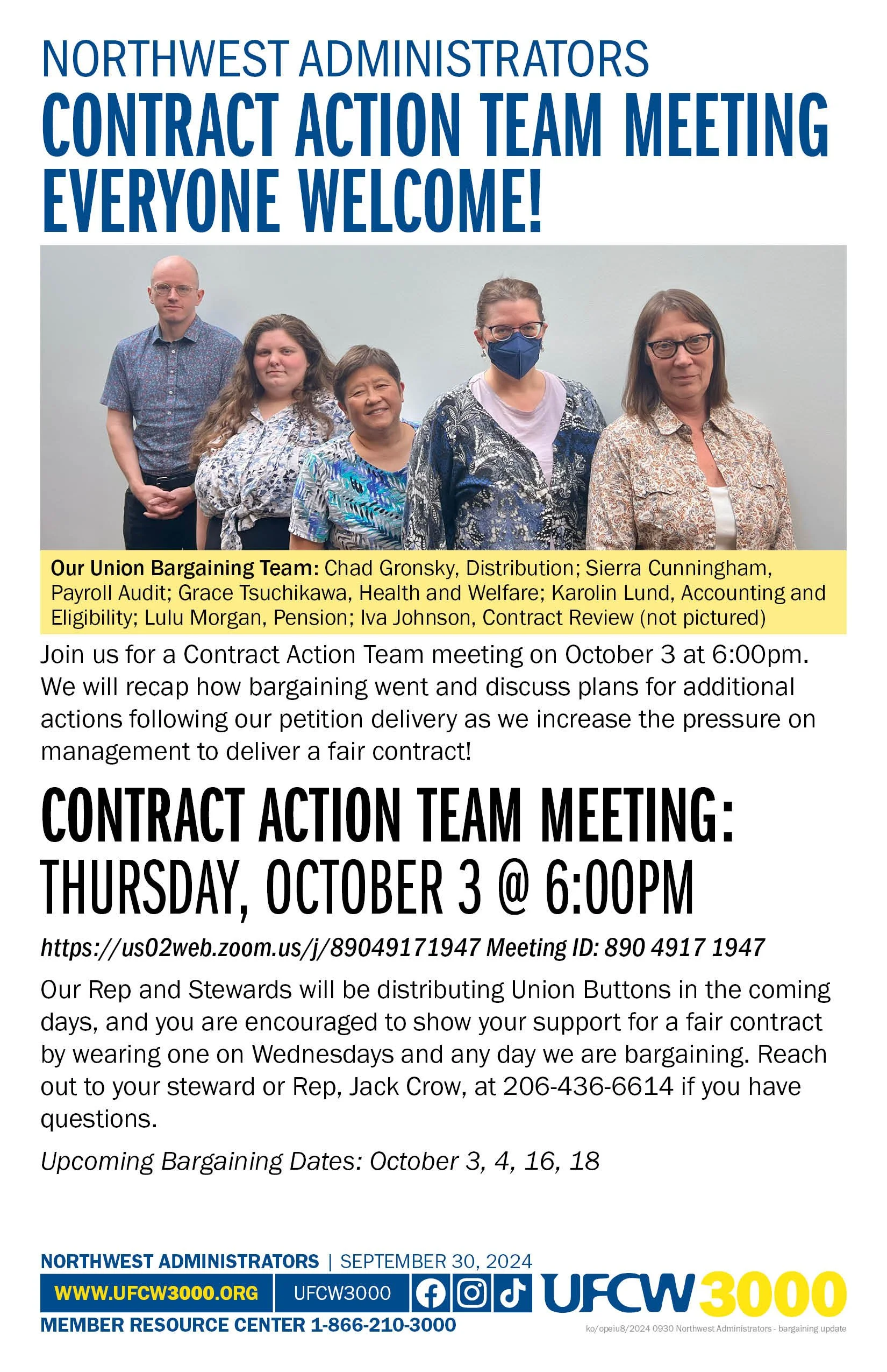 Northwest Administrators Contract Action Team Meeting Everyone Welcome!