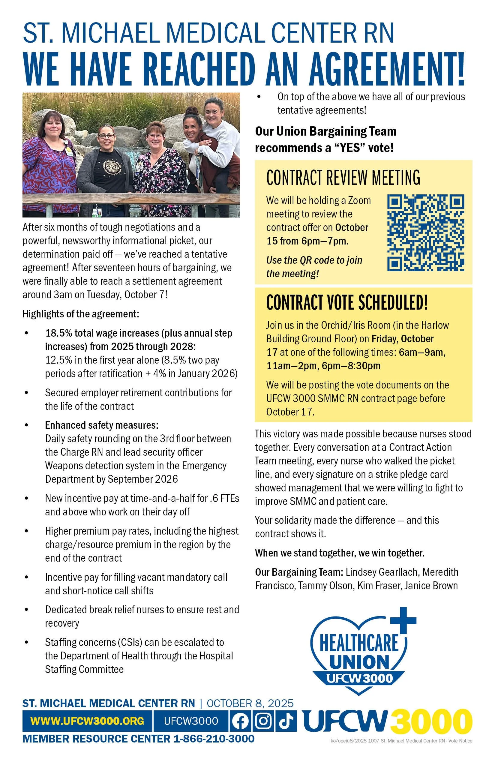 Our Union Bargaining Team recommends a “YES” vote!