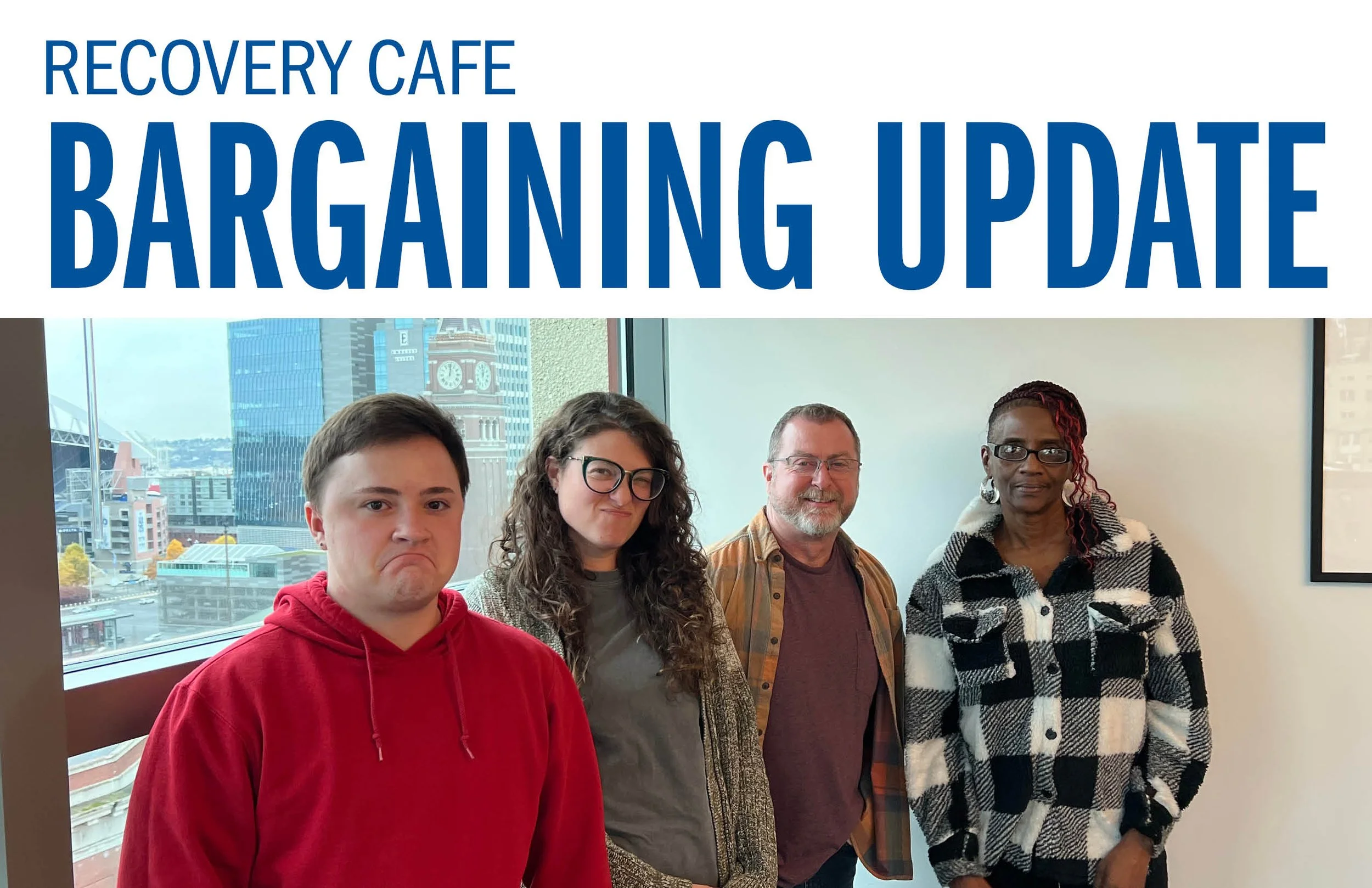 /On November 25, our union Bargaining Team met with Recovery Cafe for another bargaining session. We began our discussion asking questions about Management’s plan to support staff to meet the goals at the SODO location, what happens if the goals are not met, and alternatives to a worksite closure. While we hoped to receive a clear plan that we assumed was prepared before this potential closure was announced, we were told that we’d need to follow up with them about how they plan to double active members at SODO within the next two months. Although we have not received a plan from Management, we have a plan to protect the jobs of our coworkers and support the need of Recovery Cafe members.