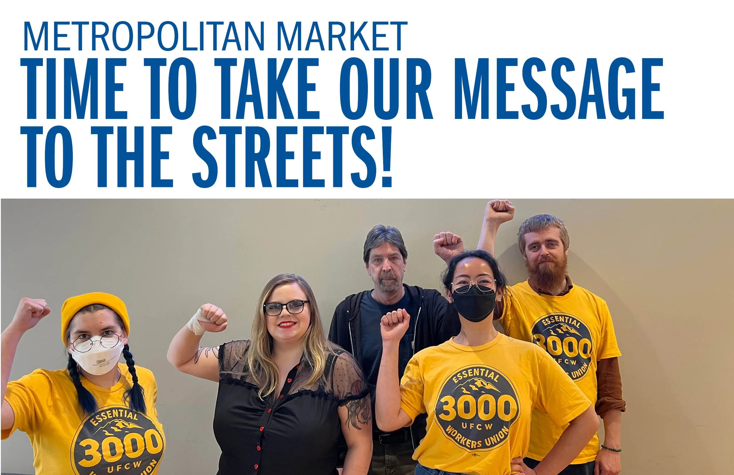 /Our Union had sent Metropolitan Market what we believed was a comprehensive proposal that would get us to a tentative agreement ready for a ratification vote of membership. Our bargaining committee worked hard to achieve a contract timeline where we could get coworkers raises and retroactive pay during the holidays this year. While we believed we met the Employer on key issues, knowing that we’re back at the bargaining table in about a year – Metropolitan Market was unable to agree to the comprehensive proposal, needing additional time to consider what we believed we already had an agreement on.