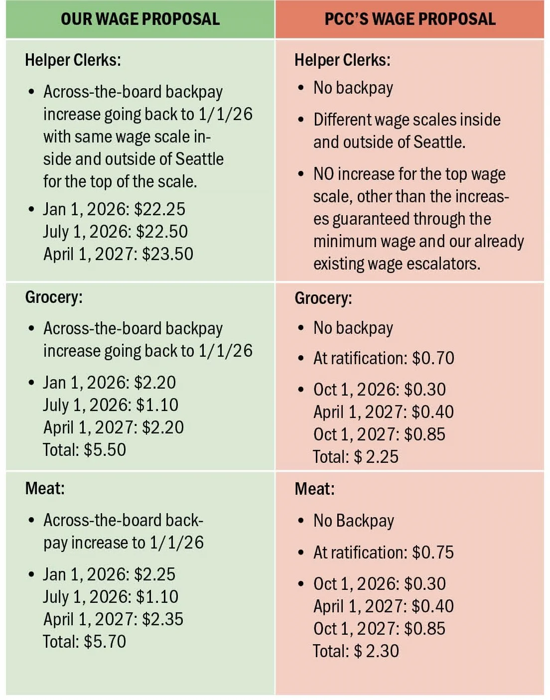Though our united actions advanced discussions in key areas, PCC has failed to propose a wage increase that keeps up with sky-rocketing costs, especially for our Helper Clerks.