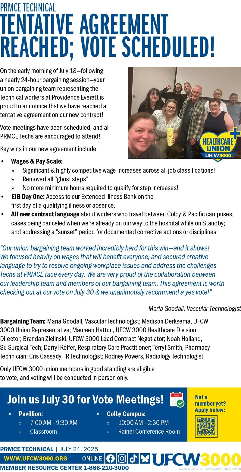 We return to the bargaining table with management for back-to-back sessions on July 23 and 24. Despite some concerns about the Employer's responses, we feel that Wednesday's session was a productive step forward. We're proud of the progress made, and remain committed to pushing forward on issues like wages, workplace safety, and protections that honor and respect the work of all RNs at Providence St. Peter.
